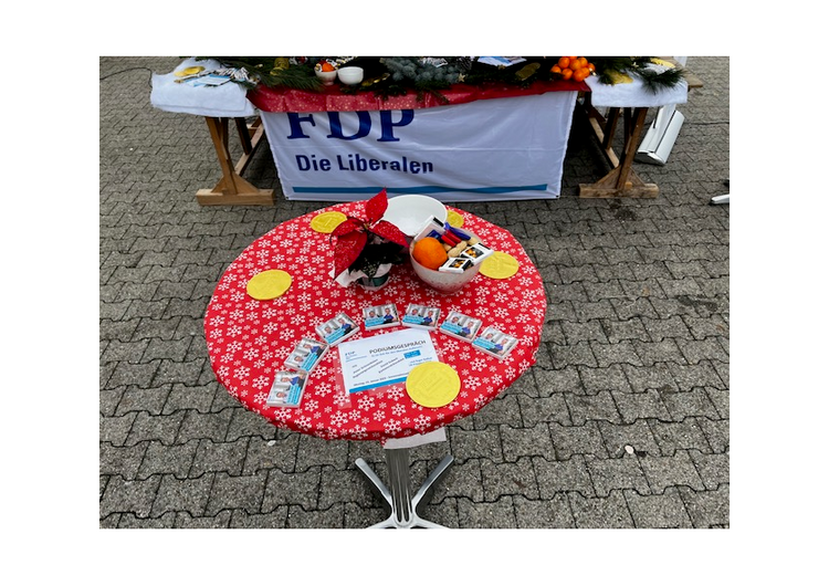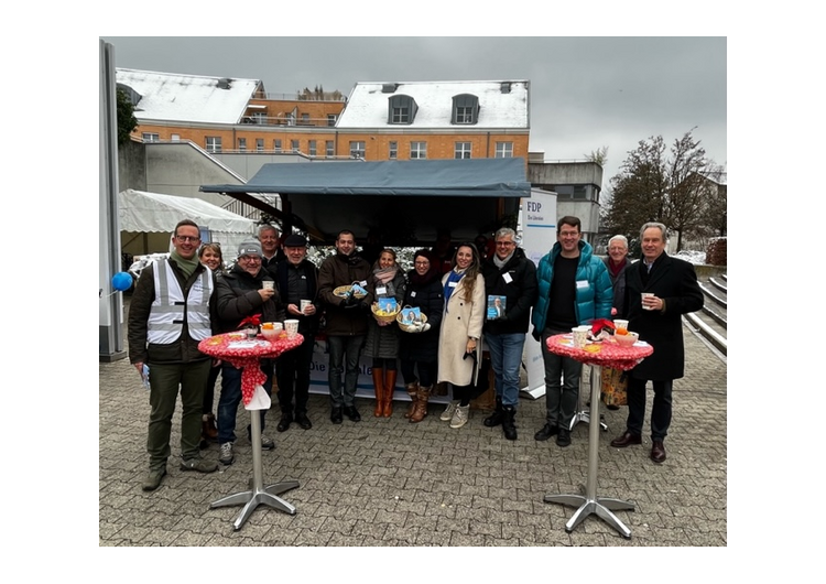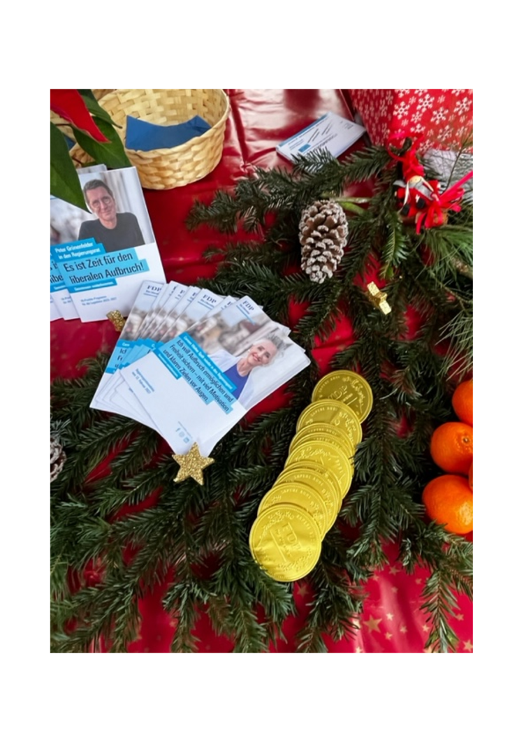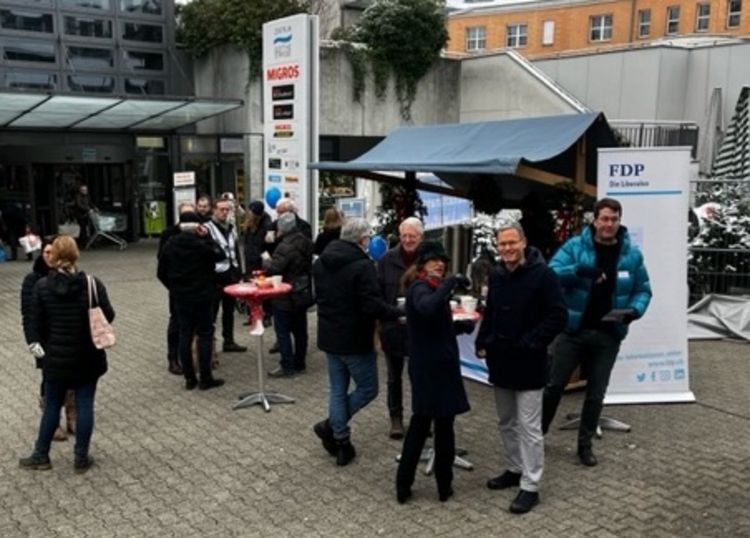 Die meisten Passanten und Passantinnen begrüssten wir bereits am Vormittag. Der FDP Vorstand und die anwesenden Kantonsrats-Kandidierenden des Bezirks Meilen empfingen alle offen und herzlich. Die Wärme und der angenehme Duft des warmen Glühweins sowie die vorweihnachtliche Musik am Stand luden viele zu einem Gespräch und etwas zum Verweilen ein. Viele der Besucher und Besucherinnen bewunderten den hübsch dekorierten FDP Glühwein-Stand mit Neugier. Farbenfroh mit Weihnachtssternen, leuchtenden Kerzen, glitzernden Sternen und weissbestäubten Tannzapfen, goldenen Schoggitalern, orangen Mandarinen, blauen FDP Luftballons für die Kinder und "FDP-Zundhölz-Schächteli" sowie vielen Flyern präsentierte sich der Stand abwechslungsreich und sicher von seiner schönsten Seite. Mit Freude vernahmen wir Kommentare, wie, das sei der schönste Weihnachtsstand im Kanton Zürich oder wie die Anwesende FDP-Regierungsrats-Kandidatin Carmen Walker Späh es ausdrückte: ein sensationell schöner Stand!